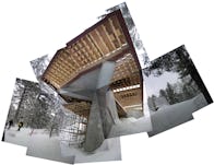 Sited upon an outcrop of exposed granite, the building has been organized into a series of terraces that respond to its sloped topography, providing a barrier-free path that connects the elevated parking area with an existing lower-level picnic zone. The terraces provide connections between interior and exterior program areas, and are sized and configured to accommodate multi-tasking of the facility for wide-ranging user groups, and to promote extended seasonal use. The entry terrace has been located southward to maximize solar aspect, and its flanking walls provide shelter from westerly winds. The events terrace is located on the sheltered easterly side of the building and is provided with a deep overhang for inclement weather. The teaching terrace serves as an outdoor amphitheater for school group presentations. The vast soffit of the exhibition hall provides an outdoor sheltered space for hikers using the adjoining trail system.