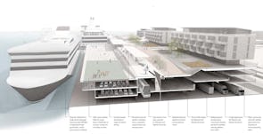 The Helsinki South Harbour will be integrated with advanced ecological approaches for biological waterfront remediation. Floating islands of wetland and bioreactive plant species help remove pollutants from the water. Along the perimeter and below the level of the boat hulls, an artificial ‘reef’ will be created that will support marine plants and species intended to restore the marine ecology of the site. Ferry effluent will be collected and converted to electricity and thermal energy onsite using innovative waste conversion technologies to provide energy to the public amenities. Heat exchangers will use the sea-water to efficiently heat the new buildings and structures. On land, stretches of local landscapes, trees and green roofs on the larger buildings will contain surface runoff and provide a habitat for local fauna.