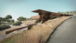The West Entry Pavilion will be the primary point of entry to the western slopes of the park for archeological survey team members and researchers staging site visits from the Notion Excavation House